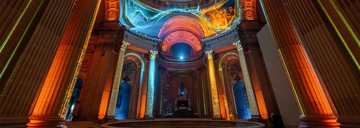 Lors de ce spectacle immersif et collectif, lumières, dispositifs sonores et effets spéciaux vous accompagnent dans la (re)découverte du grandiose Dôme des Invalides et de son patrimoine unique. En ce lieu exceptionnel, indissociable de l’Histoire de France, une série de tableaux éblouissants vous invitent à porter votre regard sur la richesse de l’architecture du Dôme – du tombeau de Napoléon 1er aux décors peints de la voûte culminant à 90 m.
