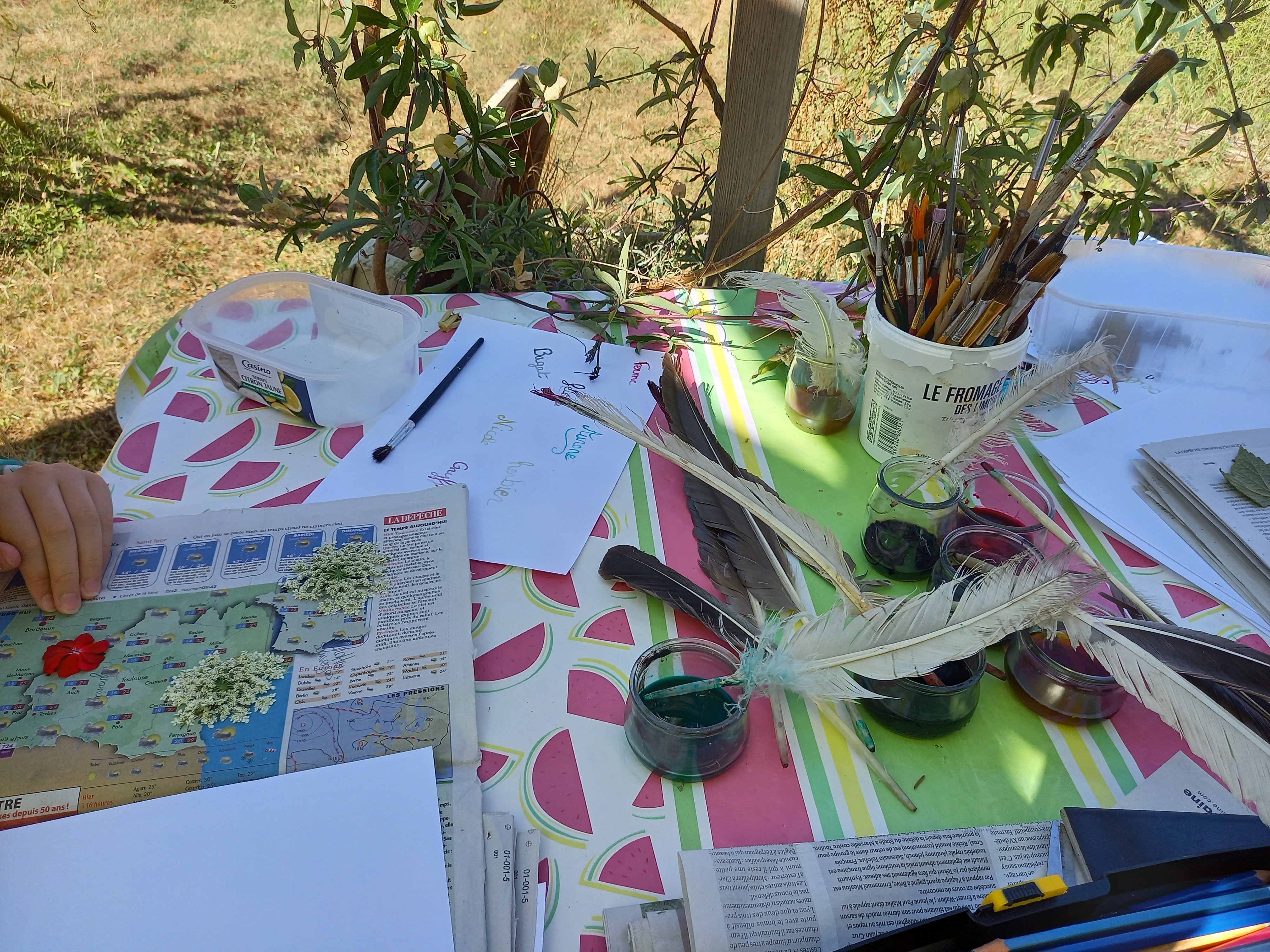 Le midi : retour pour un partage de repas sur mon jardin pédagogique qui sert de lieu d’accueil.
