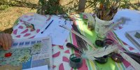 Puis l’après-midi, selon le choix des participants : atelier teintures et encres végétales ou bien visite de mes installations pour la transformation de toutes mes productions végétales : de la prune au pruneau, de la noix à l’huile, du raisin au vin/alcool… (de A à Z).