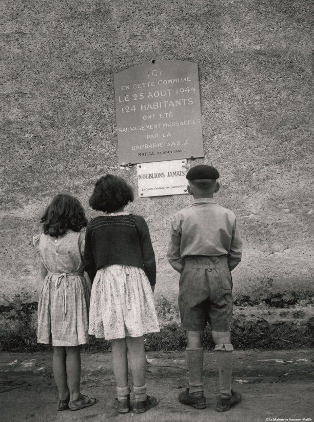 Le 25 août 1944 est entré dans l’Histoire de France comme un jour heureux : celui de la libération de Paris, symbole de la fin de 4 années d’occupation et d’humiliation. Pourtant, ce jour là, un petit village du sud de l’Indre et Loire, Maillé, était quasiment rayé de la carte.124 habitants de la commune dont une cinquantaine d’enfants sont massacrés par des soldats allemands et les bâtiments du bourg sont brûlés ou détruits à coup de canon.
